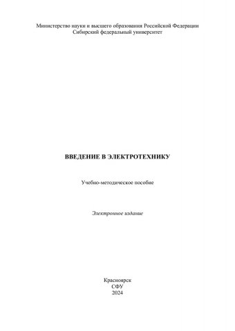 Библиографическое описание: Введение в электротехнику : учебно-методическое пособие / Сиб. федер. ун-т, Политехн. ин-т ; сост. И. В. Коваленко. - Электрон. текстовые дан. (pdf, 6,7 Мб). - Красноярск : СФУ, 2024 (2024-07-01). - 229 с. - Загл. с титул. экрана. - Изд. № 2024-21583 : Б. ц. - Текст : электронный.