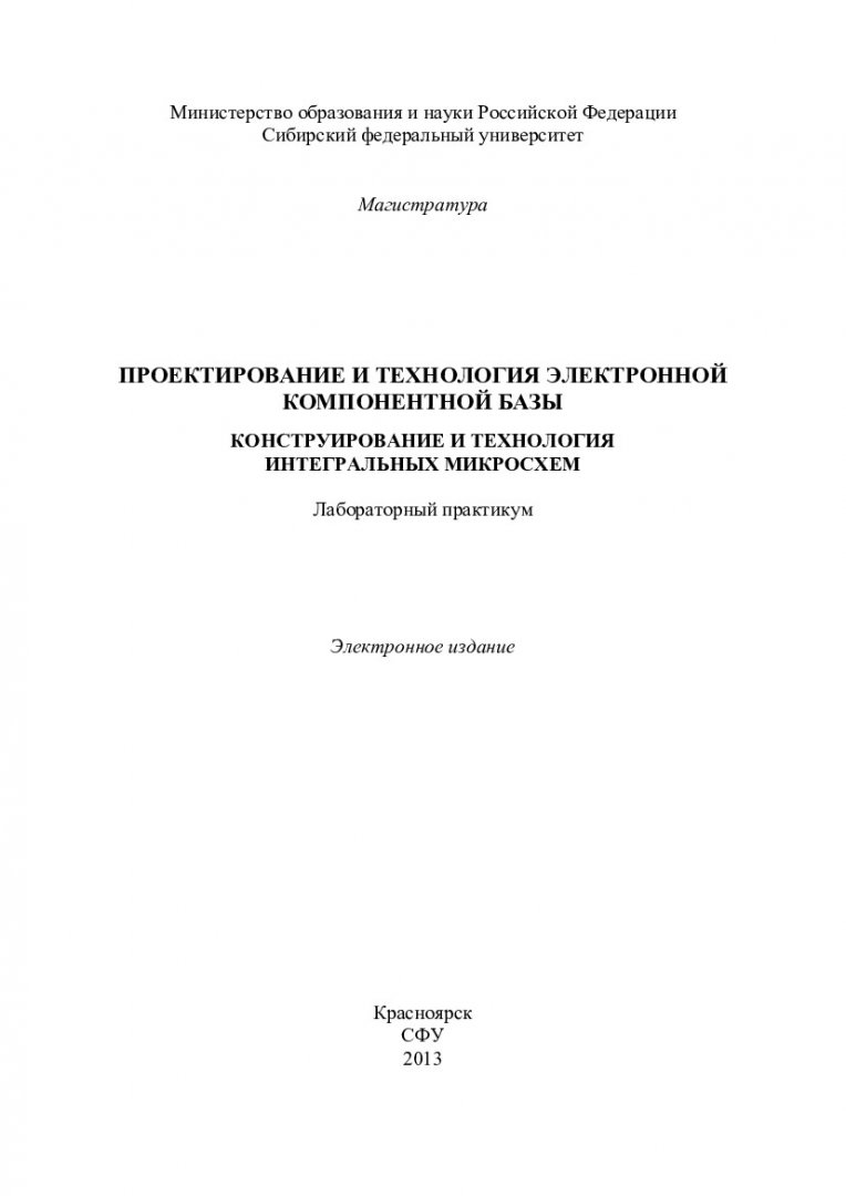 Проектирование и технология электронной компонентной базы. Конструирование и технология интегральных схем : лаб. практикум [для студентов напр. подг. 210100.68 «Электроника и наноэлектроника» и 211000.68 «Конструирование и технология электронных средств»]