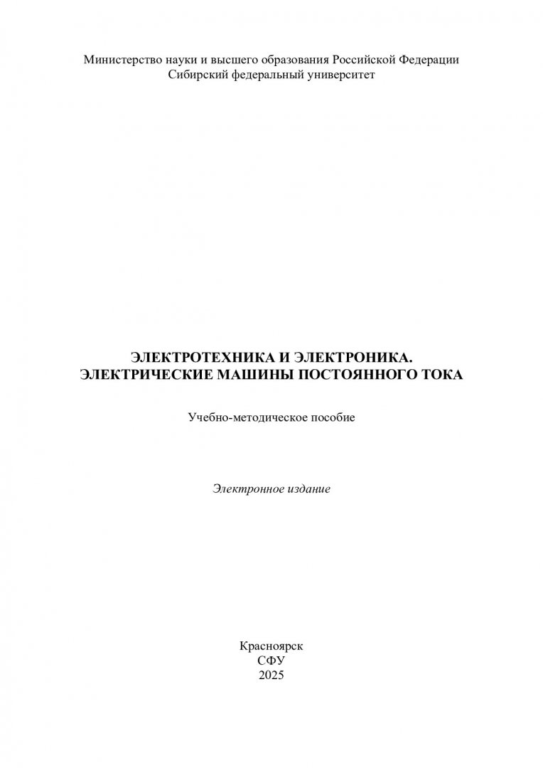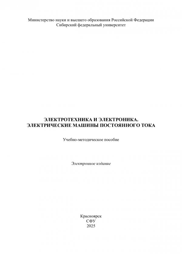 Библиографическое описание:Электротехника и электроника. Электрические машины постоянного тока : [лабораторный практикум] : учебно-методическое пособие / Сибирский федеральный университет, Институт цветных металлов ; сост.: О. А. Кручек, В. С. Куликовский, Е. В. Умецкая, Н. Г. Дегтярева. - Электрон. текстовые дан. (pdf, 3.1 Мб). - Красноярск : СФУ, 2025 (2025-11-06). - 36 с. - Загл. с титул. экрана. - Библиогр.: с. 36. - Изд. № 2025-25464 : Б. ц. - Текст : электронный.