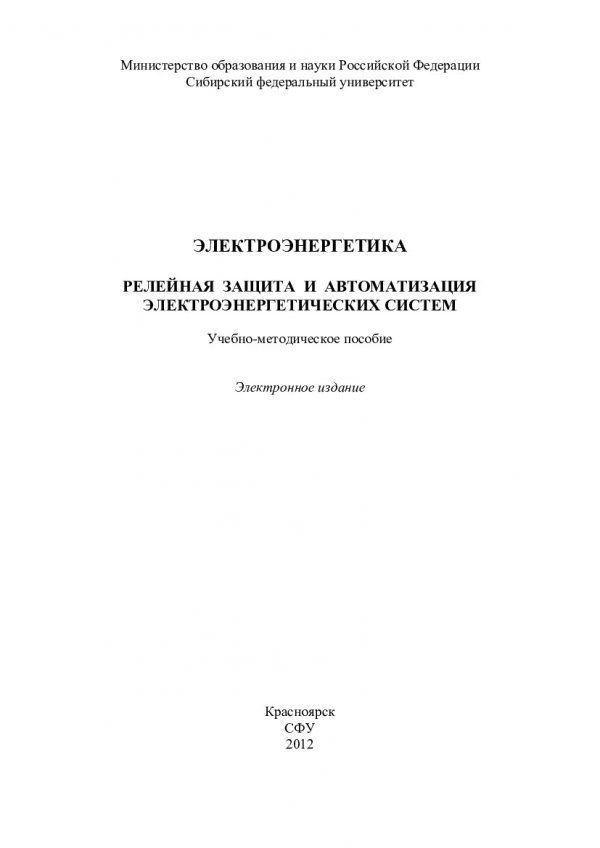 Библиографическое описание:Электроэнергетика. Релейная защита и автоматизация электроэнергетических систем : учеб.-метод. пособие для студентов спец. 140205.65 "Электроэнергетические системы и сети», 140211.65 "Электроснабжение" / Сиб. федерал. ун-т ; сост.: О. П. Халезина, Ю. А. Ершов. - Электрон. текстовые дан. (PDF, 570 Кб). - Красноярск : СФУ, 2012. - Загл. с титул. экрана. - Библиогр.: с. 37-39. - Текст : электронный.