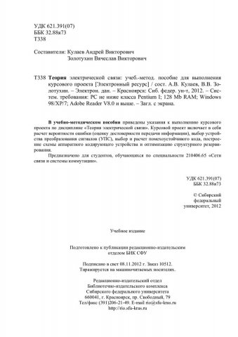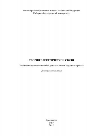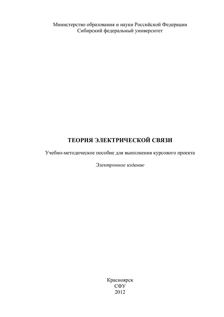 Библиографическое описание:Теория электрической связи : учеб.-метод. пособие для курс. проекта [для студентов спец. 210406.65 «Сети связи и системы коммутации»] / Сиб. федерал. ун-т ; сост.: А. В. Кулаев, В. В. Золотухин. - Электрон. текстовые дан. (PDF, 380 Кб). - Красноярск : СФУ, 2012. - Загл. с титул. экрана. - Библиогр.: с. 20. - Текст : непосредственный.