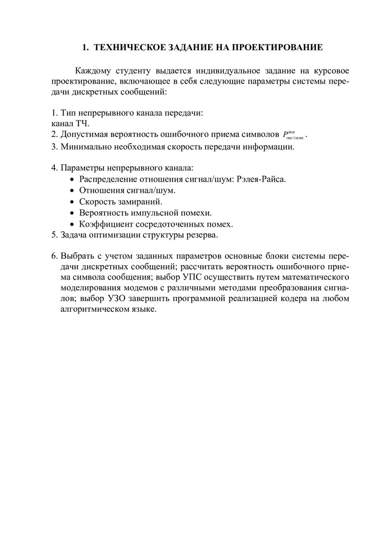 Аннотация:В учебно-методическом пособии приведены указания к выполнению курсового проекта по дисциплине «Теория электрической связи». Курсовой проект включает в себя расчет вероятности ошибки (оценку достоверности передачи информации), выбор устройства преобразования сигналов (УПС), выбор и расчет помехоустойчивого кода, построение схемы аппаратного кодирующего устройства и оптимизацию структурного резервирования. Предназначено для студентов, обучающихся по специальности 210406.65 «Сети связи и системы коммутации».