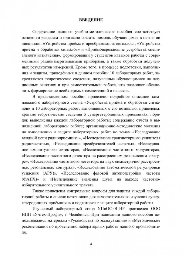 Аннотация: Учебно-методическое пособие содержит подробное описание комплексного лабораторного стенда «Устройства приёма и обработки сигналов» и 10 лабораторных работ, выполняемых с его помощью в рамках изучения дисциплин «Устройства приёма и обработки сигналов», «Устройства приёма и преобразования сигналов» и «Приёмопередающие устройства специального назначения» с целью закрепления теоретических сведений, полученных в рамках лекционного курса. В тексте пособия приводятся необходимые сведения, порядок выполнения, содержание отчёта о выполнении и контрольные вопросы, рекомендуемые для защиты лабораторных работ, приводится список литературы. Предназначено для студентов, обучающихся по специальностям 11.05.01 «Радиоэлектронные системы и комплексы», 11.05.02 «Специальные радиотехнические системы и комплексы», 25.05.03 «Техническая эксплуатация транспортного радиооборудования», направлениям бакалавриата 11.03.01 «Радиотехника», 11.03.02 «Информационные технологии и системы связи», 12.03.01 «Приборостроение».
