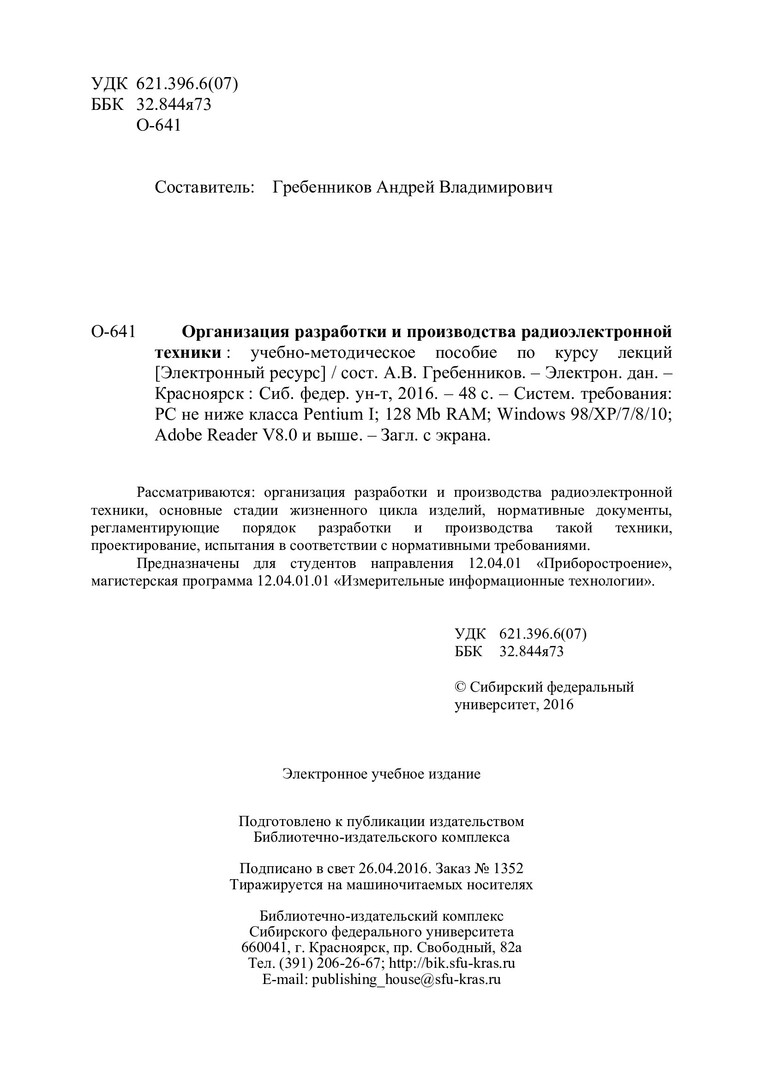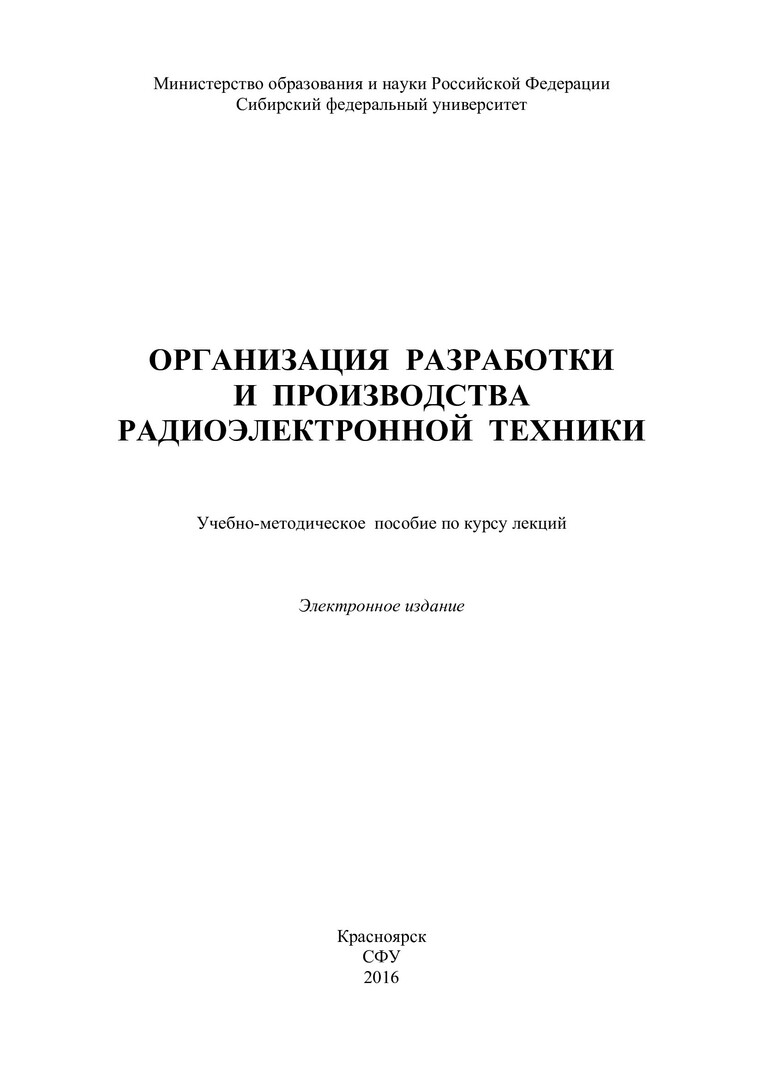 Организация разработки и производства радиоэлектронной техники : учебно-методическое пособие по курсу лекций [для студентов напр. 12.04.01 «Приборостроение», магистерской программы 12.04.01.01 «Измерительные информационные технологии»]