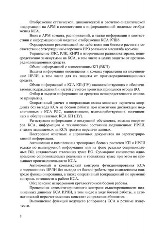 Аннотация:Изложены принципы построения и основные тактико-технические характеристики унифицированного комплекса средств автоматизации пункта управления радиолокационной роты межвидового применения «Фундамент-1» (КСА 97Ш6), его устройство, состав, порядок функционирования, принципы функционального взаимодействия с внешними и внутренними абонентами, порядок и организация сопряжения с источниками радиолокационной информации. Приведены варианты исполнения изделия и размещение его на объекте эксплуатации, состав боевого расчета КСА и его функциональные обязанности. Показаны вероятные неисправности и порядок проведения ремонтно-восстановительных работ. Предназначено для курсантов учебного военного центра Сибирского федерального университета, обучающихся по специальности «Эксплуатация и ремонт средств автоматизированного управления радиотехническими средствами противовоздушной обороны» по дисциплине «Устройство и эксплуатация КСА РТВ».