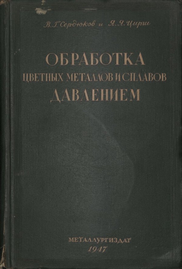 Библиографическое описание:Сердюков, В. Г. Обработка цветных металлов и сплавов давлением : учебник для техникумов / В. Г. Сердюков, Я. Я. Цирш. - Москва : Металлургиздат, 1947. - 508 с. : ил., табл. + 7 л. схемы. - Библиогр.: с. 505-508. - (в пер.) : 2.50 р. - Текст : непосредственный. Примечания о происхождении: передано из библиотеки Минцветметзолото