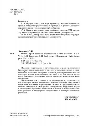 Библиографическое описание:Васильев, Сергей Иванович. Основы промышленной безопасности : учеб. пособие для студентов вузов спец. "Подъемно-транспортные, строительные, дорожные машины и оборудование" : в 2-х ч. / С. И. Васильев, Л. Н. Горбунова ; Сиб. федерал. ун-т, Ин-т нефти и газа. - Красноярск : СФУ, 2012. - ISBN 978-5-7638-2320-2. - Текст : непосредственный. + Текст : электронный. Ч. 1. - 2012. - 501 с. : ил. - Библиогр.: с. 487-498. - 100 экз. - ISBN 978-5-7638-2321-9 : 319.00 р. - Изд. № 2012-4349