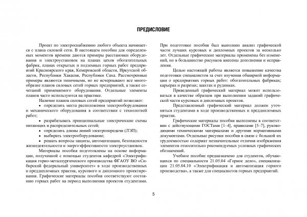 Библиографическое описание: Герасимов, Анатолий Игоревич. Электроснабжение горных предприятий: проектные предложения для курсового и дипломного проектирования : учебное пособие / А. И. Герасимов, С. В. Кузьмин, О. А. Ковалева ; Сиб. федер. ун-т, Ин-т горн. дела, геологии и геотехнологий. - Красноярск : СФУ, 2017. - 263 с. : схемы, табл., цв. ил. - Библиогр.: с. 263. - 100 экз. - ISBN 978-5-7638-3572-4 : 1464.00 р. - Изд. № 2016-3297. - Текст : непосредственный + Текст : электронный.