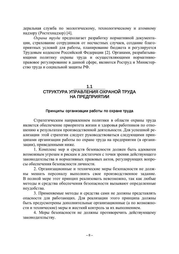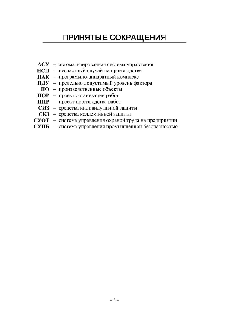 Аннотация: Раскрыты принципы, методы и средства обеспечения производственной и промышленной безопасности, основные принципы государственного надзора в области промышленной безопасности и общественного контроля за охраной труда, вопросы организации службы охраны труда и обучения безопасности на предприятии. Представлены материалы для практических занятий по основным темам дисциплины. Предназначено для бакалавров, обучающихся по направлениям 20.03.01 «Техносферная безопасность», 20.03.01.31 «Безопасность жизнедеятельности в техносфере».