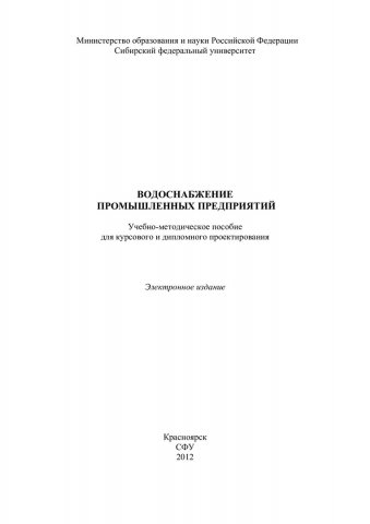 Библиографическое описание:Водоснабжение промышленных предприятий : учебно-методическое пособие для курсового и дипломного проектирования [для студентов спец. 270112.65, 270112.62 «Водоснабжение и водоотведение»] / Сиб. федерал. ун-т ; сост.: Т. Я. Пазенко, А. Ф. Колова. - Электрон. текстовые дан. (PDF, 7,67 Мб). - Красноярск : СФУ, 2012. - Библиогр.: с. 79. - Текст : электронный.