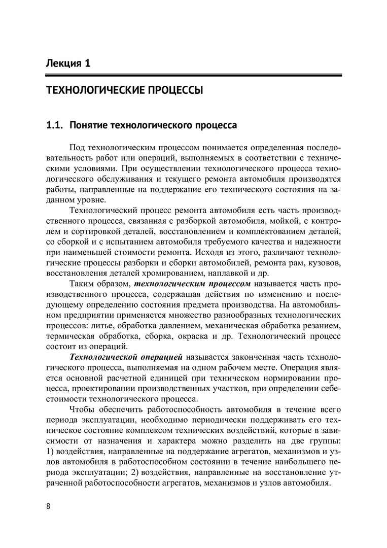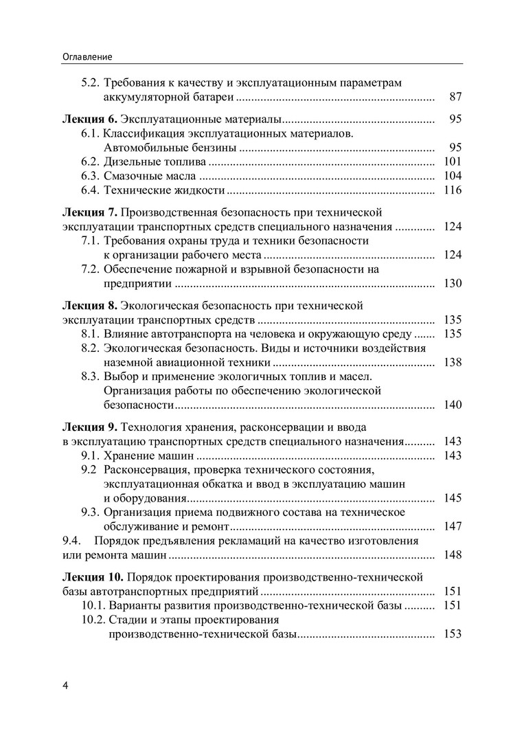 Аннотация:В курсе лекций раскрыто понятие технологического процесса, рассмотрены планово-предупредительная система технического обслуживания и ремонта транспортных средств специального назначения (ТССН), конструкции и техническое обслуживание колес и шин транспортных средств, обеспечение работоспособности сборочных единиц машин, классификации эксплуатационных материалов, эксплуатация и утилизация аккумуляторных батарей, особенности сезонной эксплуатации транспортных средств специального назначения, основы проектирования сервисных предприятий, производственная и экологическая безопасность при технической эксплуатации транспортных средств специального назначения, техническая эксплуатация в обеспечении экологической безопасности, технология хранения, расконсервации и ввода в эксплуатацию транспортных средств специального назначения. Предназначен для студентов, обучающихся по специальности «Транспортные средства специального назначения» (специализация «Наземные транспортные средства и комплексы аэродромно-технического обеспечения полетов авиации»). Может использоваться для прикладных целей.