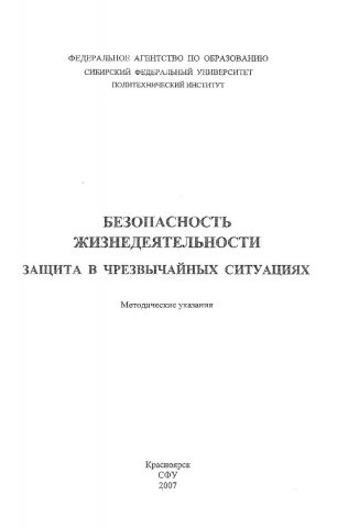 Библиографическое описание:Безопасность жизнедеятельности. Защита в чрезвычайных ситуациях : методические указания к практическим занятиям / сост.: Г. В. Гебрашвили, С. Е. Груздева ; Сибирский федеральный университет, Политехнический институт. - Красноярск : ИПЦ СФУ, 2007. - 54 с. - Библиогр.: с. 48. - Текст : непосредственный + Текст : электронный.
