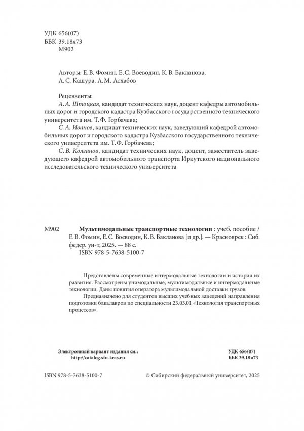 Мультимодальные транспортные технологии : учебное пособие
