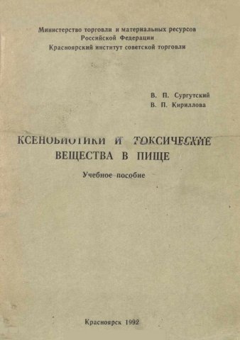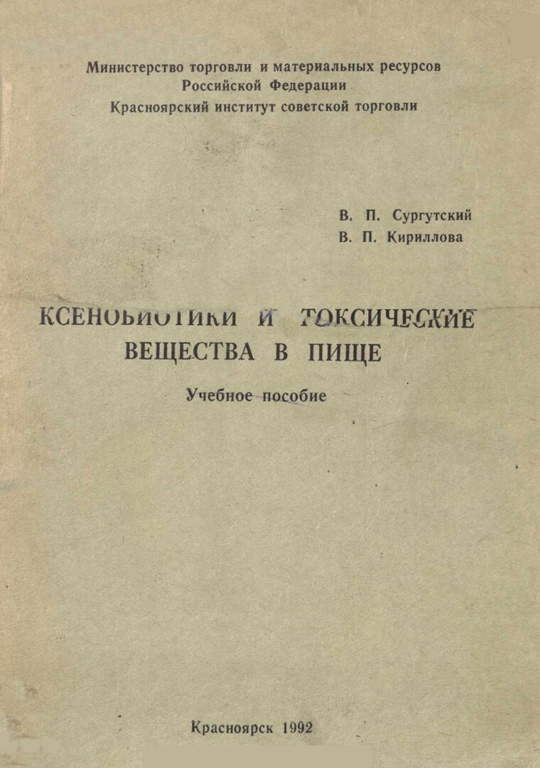 Библиографическое описание: Сургутский, Виталий Петрович. Ксенобиотики и токсические вещества в пище : учебное пособие [для студентов технологических специальностей торговых вузов] / В. П. Сургутский, В. П. Кириллова ; ред. Н. И. Ковалев ; Министерство торговли и материальных ресурсов РФ, Красноярский институт советской торговли. - Электрон. текстовые дан. (pdf, 23,5 Мб). - Красноярск : [б. и.], 1992. - 76 с. : ил. - Загл. с титул. экрана. - Электрон. версия печ. публикации . - Б. ц. - Текст : непосредственный.