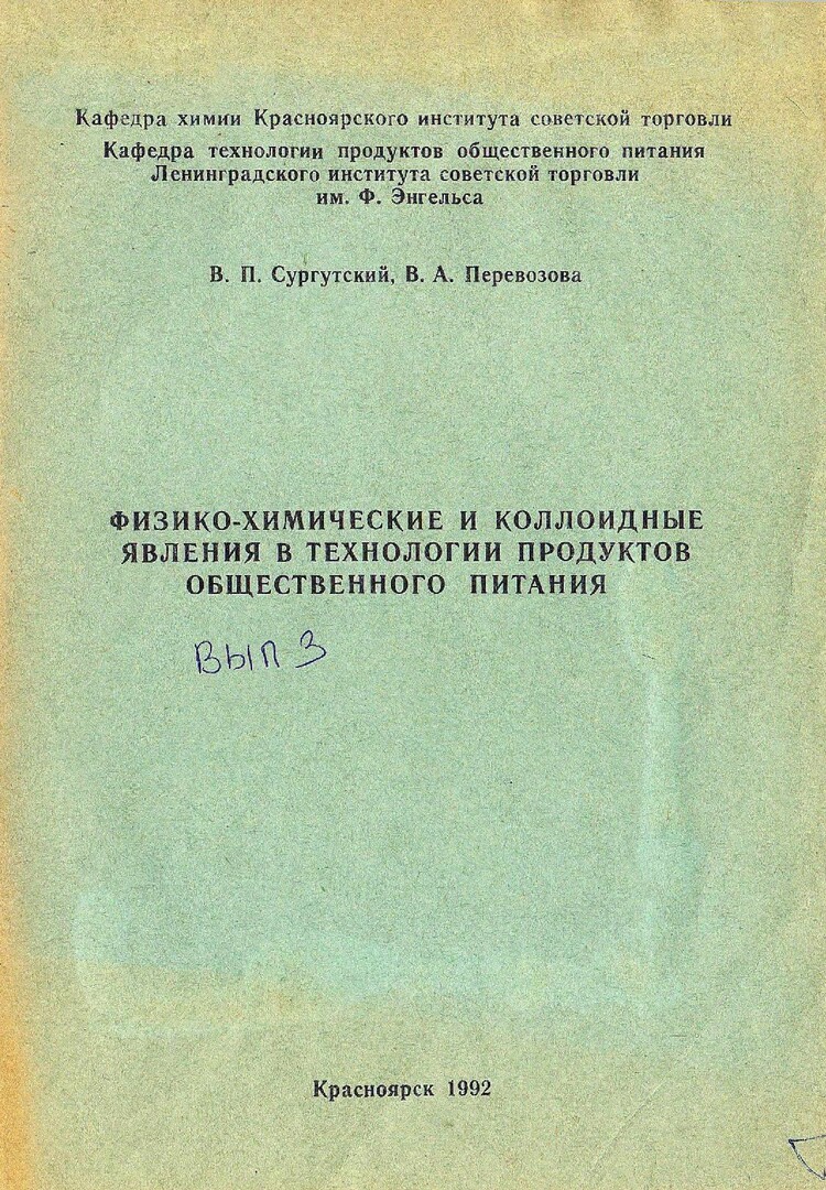 Физико-химические и коллоидные явления в технологии продуктов общественного питания : учебное пособие для студентов технологического факультета. Вып. 3. Порошки, суспензии, эмульсии, пены, аэрозоли, коллоидные ПАВ