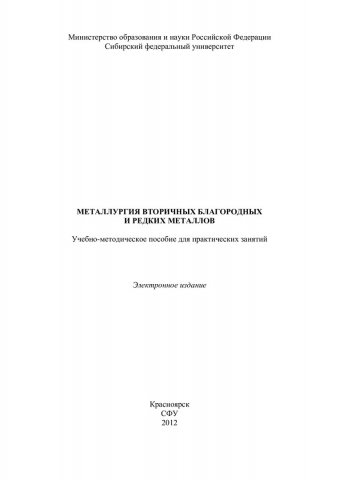 Металлургия вторичных благородных и редких металлов : учеб.-метод. пособие для практ. занятий [для студентов спец. 150109.65 «Металлургия техногенных и вторичных ресурсов»]