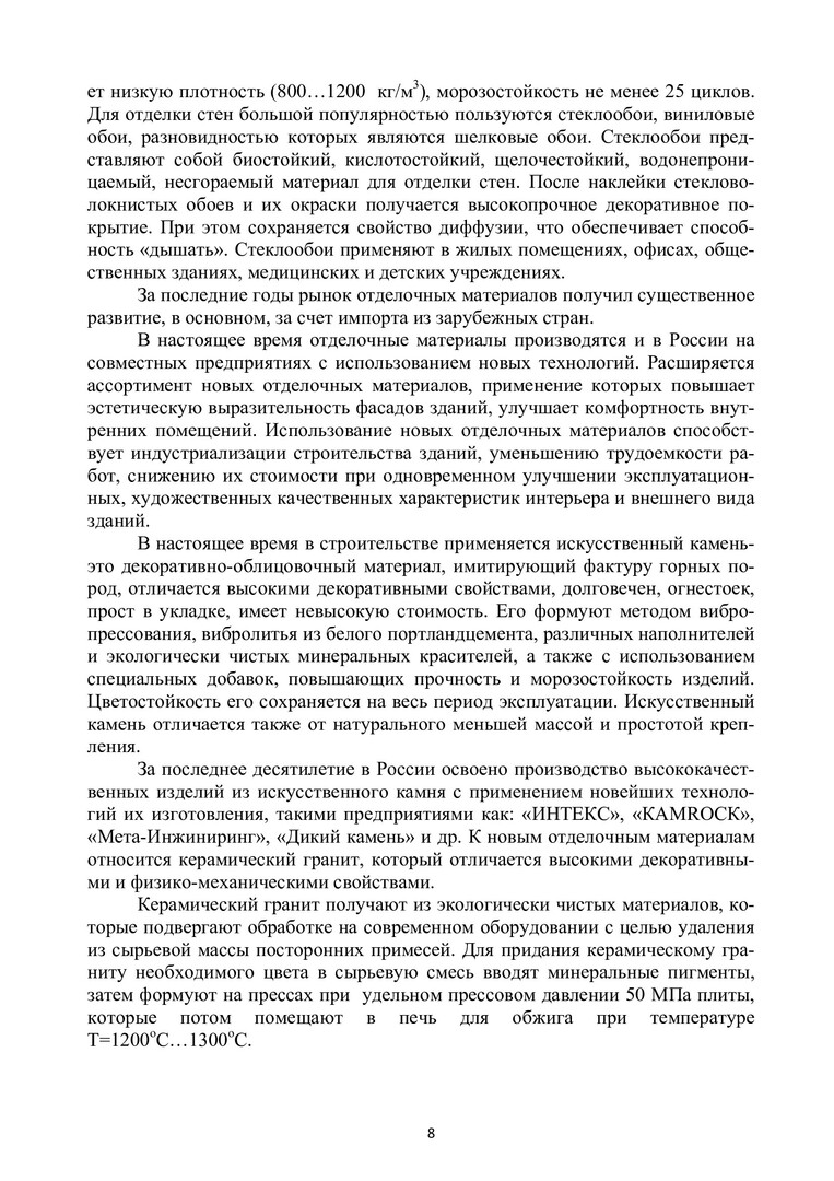 Аннотация:Учебно-методическое пособие содержит конспект лекций по неорганическим и органическим отделочным материалам, которые могут быть использованы студентами при подготовке к защите лабораторных работ и к сдаче зачета по дисциплине «Технология отделочных материалов». Предназначено для студентов специальности 270106 «Производство строительных материалов, изделий и конструкций».