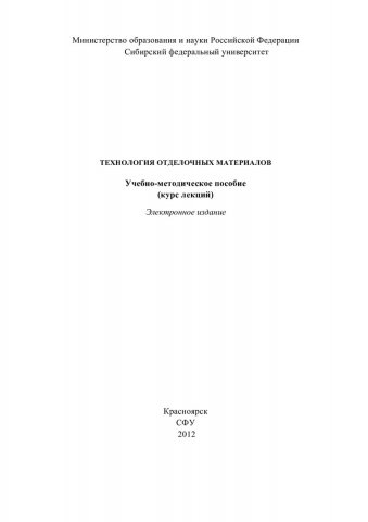 Технология отделочных материалов : учеб.-метод. пособие (курс лекций) для студентов по спец. 270106 "Производство строит. материалов, изделий и конструкций"