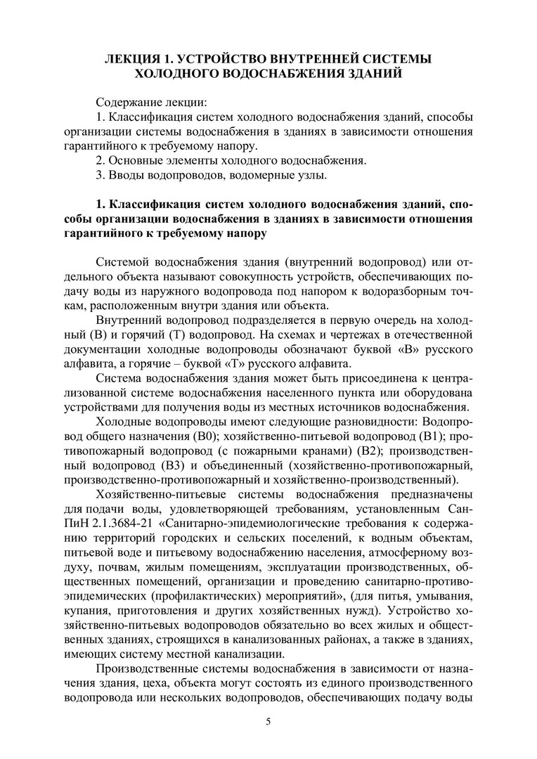Ключевые слова: водоснабжение зданий, холодное водоснабжение, горячее водоснабжение, централизованное горячее водоснабжение, насосные установки, противопожарные системы, канализация, водоотведение