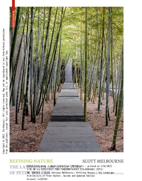 Библиографическое описание:Melbourne, Scott. Refining nature : the landscape architecture of Peter Walker / Scott Melbourne. - Электрон. текстовые дан. - [S. l. : s. n.], 2022. - 1 online resource : il. - Загл. с титул. экрана. - Includes bibliographical references and index. - ISBN 9783035626292. - ISBN 3035626294 : Б. ц. - Текст : электронный. Перевод заглавия: Облагораживающая природа : ландшафтная архитектура Питера Уокера Примечания о происхождении: Коллекция цифровых книг Ebsco ebook (централизованная подписка 2023 г., бессрочный доступ). НБ СФУ