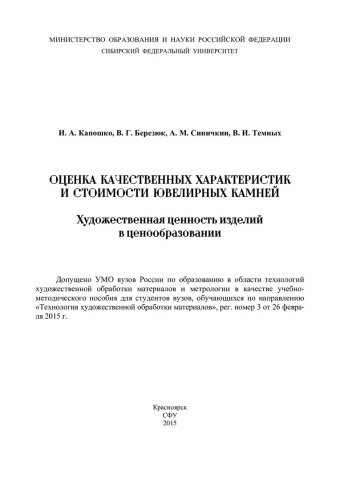 Оценка качественных характеристик и стоимости ювелирных камней. Художественная ценность изделий в ценообразовании : учебное пособие для студентов вузов, обучающихся по направлению "Технология художественной обработки материалов"