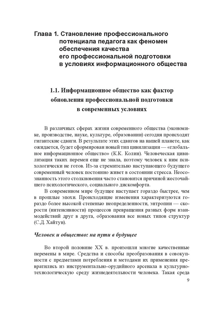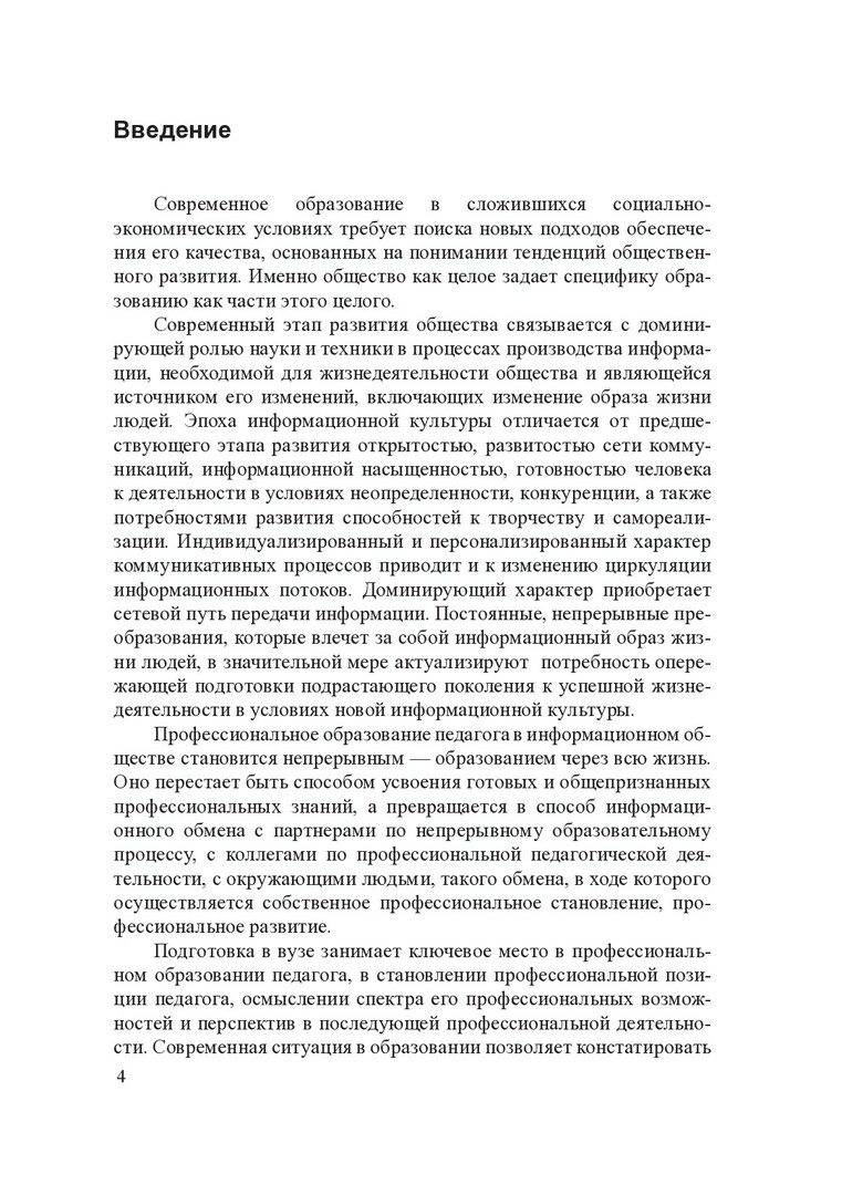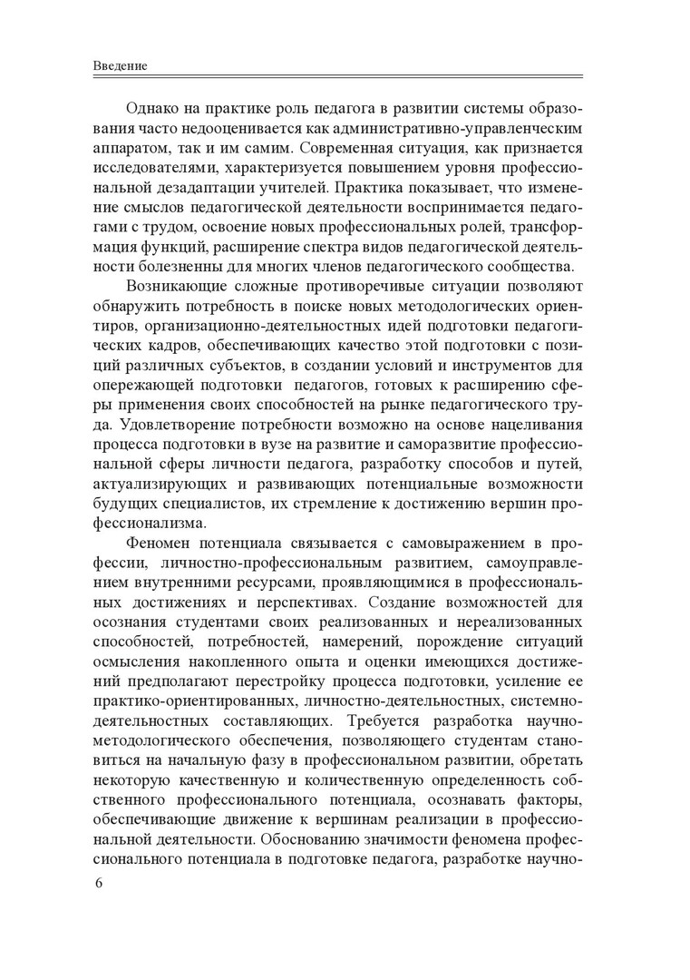 Аннотация: Монография посвящена теоретико-методологическому обоснованию феномена становления профессионального потенциала педагога в процессе подготовки в вузе. Указанный феномен способен выступать категорией качества профессиональной подготовки педагога в условиях информационного общества. Раскрываются научно-практические предпосылки и условия, обеспечивающие возникновение этого явления. Описывается опыт исследовательско-экспериментальной работы по становлению профессионального потенциала педагога в образовательной практике. Для научных сотрудников в области педагогики и профессионального образования, преподавателей педагогических вузов и колледжей. Может быть полезна студентам педагогических вузов и колледжей, учителям и слушателям в системе повышения педагогической квалификации.