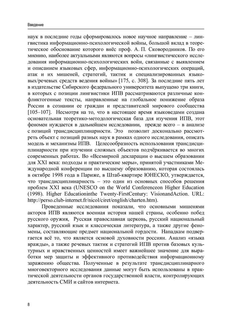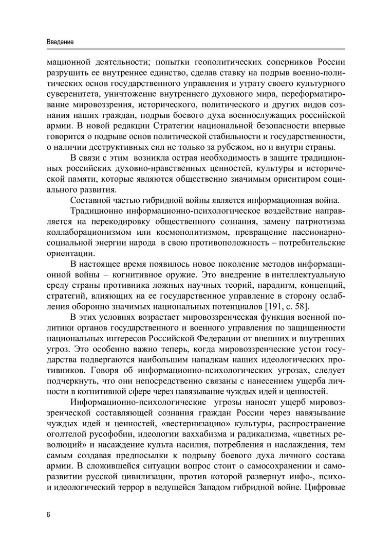 Аннотация: Представлено трансдисциплинарное исследование феномена информационно-психологической войны, развязанной в настоящее время против России. Подробно проанализированы с философской, исторической, лингвистической точек зрения спорные тексты, в которых дискредитируются такие духовные ценности современного российского общества, как победа СССР в Великой Отечественной войне, Русская православная церковь и православие. Рекомендована работникам образования, журналистам, политикам – всем, кто профессионально интересуется вопросами информационно-психологических войн. Полезна она будет также студентам различных вузов и колледжей, поскольку содержит аргументированную оценку спорного интернет-контента, содержание которого нацелено прежде всего на переформатирование ценностной картины мира молодежи.