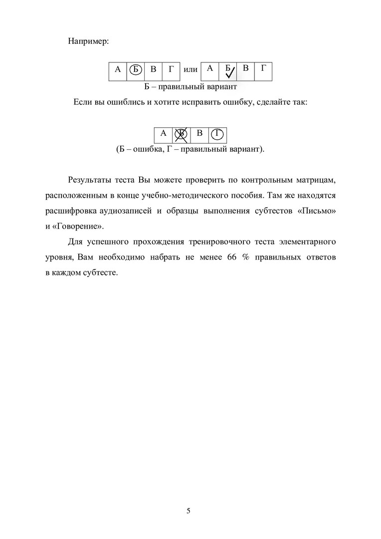 Аннотация: «Тренировочные тесты по русскому языку как иностранному: элементарный уровень (А1)» являются учебно-методическим пособием по подготовке к тестированию по пяти субтестам («Лексика. Грамматика», «Чтение», «Аудирование», «Письмо», «Говорение»). Два варианта тестов составлены в соответствии с требованиями Российской системы тестирования граждан зарубежных стран по русскому языку. Предназначено для иностранных граждан, готовящихся к сдаче ТЭУ; преподавателей русского языка как иностранного, работающих в России и за рубежом; разработчиков контрольных материалов в тестовой форме.