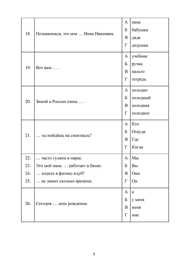 Ключевые слова: русский язык, лексика русского языка, грамматика русского языка, тесты тренировочные