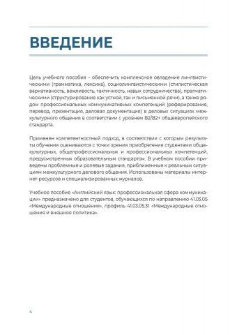 Аннотация: Приведены проблемные и ролевые задания, приближенные к реальным ситуациям межкультурного делового общения. Использованы материалы интернет-ресурсов и специализированных журналов. Пособие направлено на формирование и развитие иноязычной профессиональной коммуникативной компетентности. Предназначено для бакалавров, обучающихся по направлению 41.03.05 «Международные отношения», профиль 41.03.05.31 «Международные отношения и внешняя политика».
