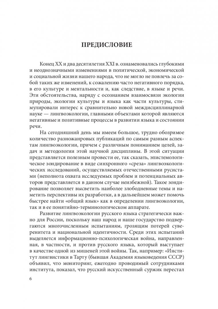 Аннотация: Представлены результаты лингвоэкологических исследований, выполненных в рамках различных научных школ, объединенных заботой о состоянии и функционировании русского языка в эпоху информационного противоборства, цифровизации и медиатизации современного общества. Освещено основное проблемное поле лингвоэкологии, намечены пути решения некоторых проблем. Предназначена прежде всего для людей, профессионально интересующихся лингвоэкологическими вопросами: лингвистов, журналистов, работников образования, а также общественных деятелей и всех, кто хотел бы расширить представление о роли русского языка в жизни общества и Российского государства.