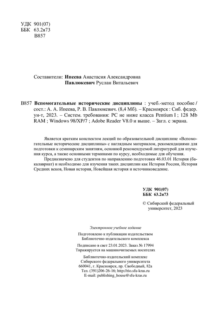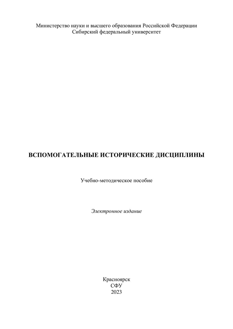Вспомогательные исторические дисциплины : учебно-методическое пособие