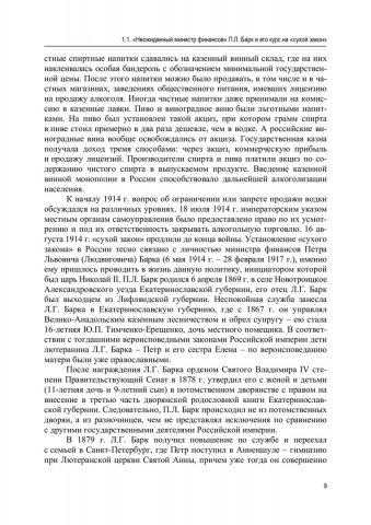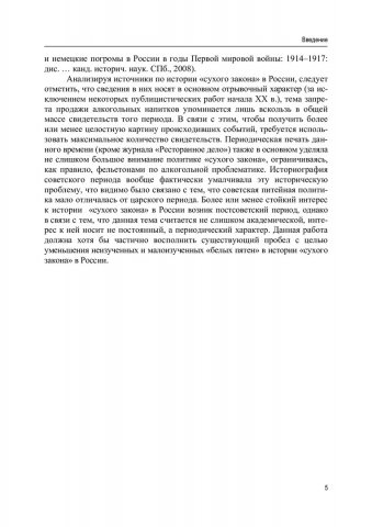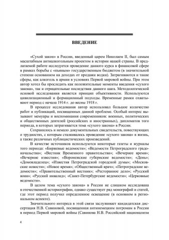 Аннотация: Рассматриваются процесс введения в России «сухого закона» и его последствия в финансово-экономическом плане в период Первой мировой войны 1914‒1918 гг. Прослеживается влияние данной политики на российскую армию как на территории нашей страны, так и за ее пределами (в Экспедиционном корпусе русской армии во Франции и Греции). Уделяется внимание общественно-политической дискуссии в России, которая развернулась в процессе осуществления «сухого закона», немецкому погрому 1915 г. в Москве, а также питейной политике, проводившейся в этот период в странах, которые участвовали в Первой мировой войне (государства Антанты и Четверного союза). Предназначено для студентов-историков, аспирантов, преподавателей, научных работников и исследователей борьбы с пьянством в России, а также широкого круга читателей.