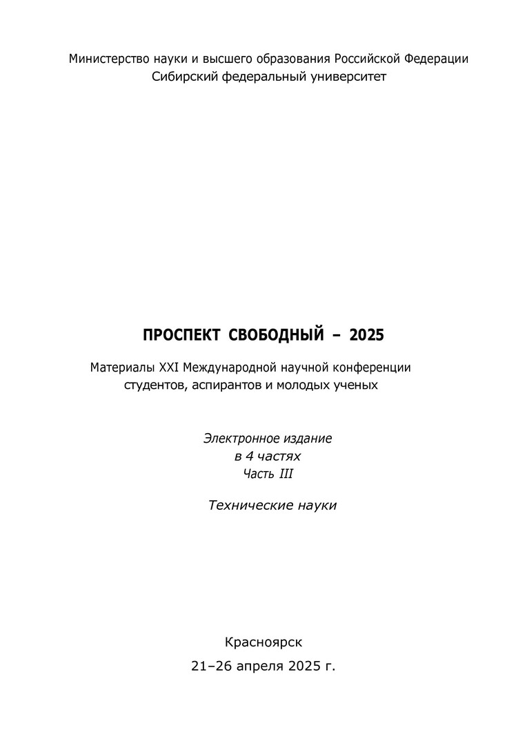 Проспект Свободный - 2025 : материалы XXI Международной научной конференции студентов, аспирантов и молодых ученых. Красноярск, 21-26 апреля 2025 г.. Ч. III. Технические науки