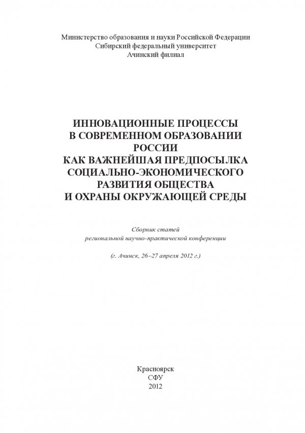 Инновационные процессы в современном образовании России как важнейшая предпосылка социально-экономического развития общества и охраны окружающей среды : сборник статей региональной научно-практической конференции, (г. Ачинск, 26–27 апреля 2012 г.)сборник материалов конференции