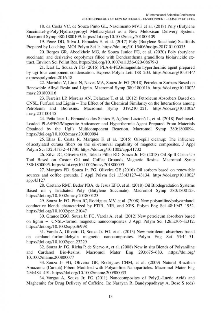 Ключевые слова: полимерные изделия, полимерные материалы, биоматериалы, полигидроксиалканоаты, отходы промышленные, рыбная промышленность, биополимеры, плавление полимеров, лазерное воздействие, лазерное излучение, мкс, композитные материалы, органические пероксиды, фунгициды, оксидазы, наноалмазы, биомедицинские исследования, токсическое воздействие химических веществ на живые организмы, беровин, раневые покрытия, бактериальная целлюлоза, наночастицы серебра, макрофаги, антимикробные свойства серебра, пестициды, болезни сельскохозяйственных культур, возбудители болезней растений, флуоресценция хлорофилла, гербициды, биоремедиация загрязненных почв и грунтов, средства защиты растений, фитогенные кормовые добавки, дикоросы, лишайники, мхи, фитопланктон водохранилищ