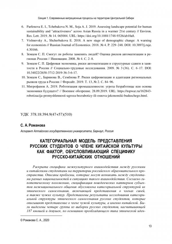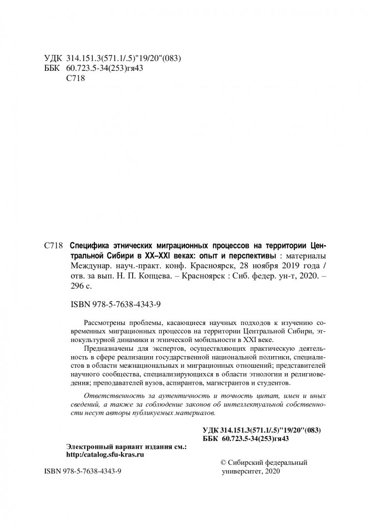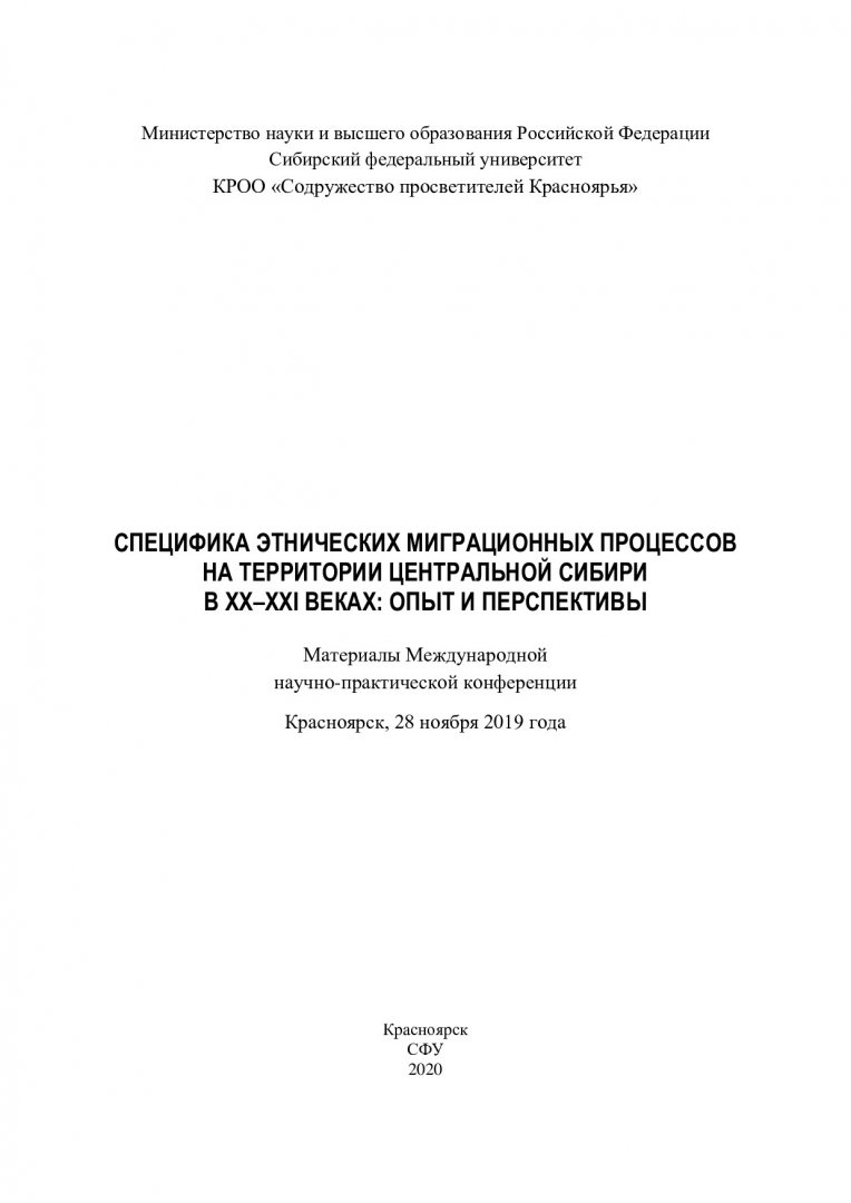Специфика этнических миграционных процессов на территории Центральной Сибири в XX-XXI веках: опыт и перспективы : материалы международной научно-практической конференции, Красноярск, 28 ноября 2019 г.
