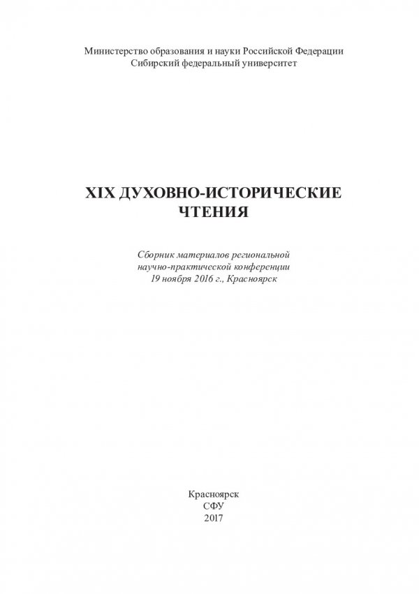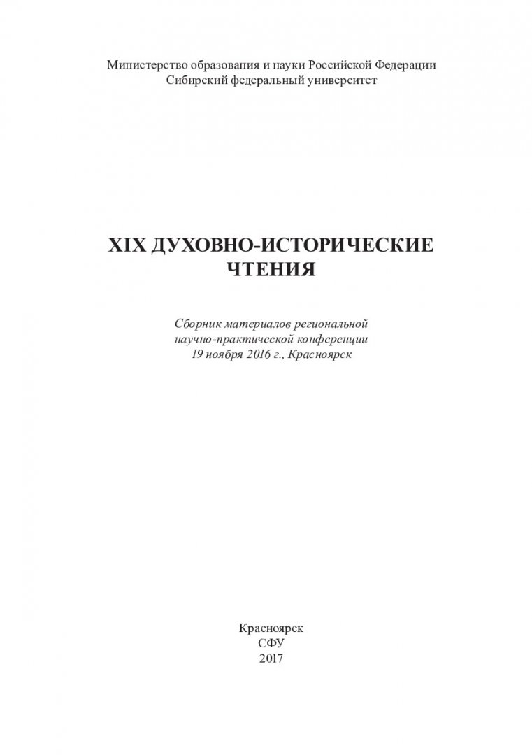 XIX Духовно-исторические чтения : сборник материалов региональной научно-практической конференции 19 ноября 2016 г., Красноярск