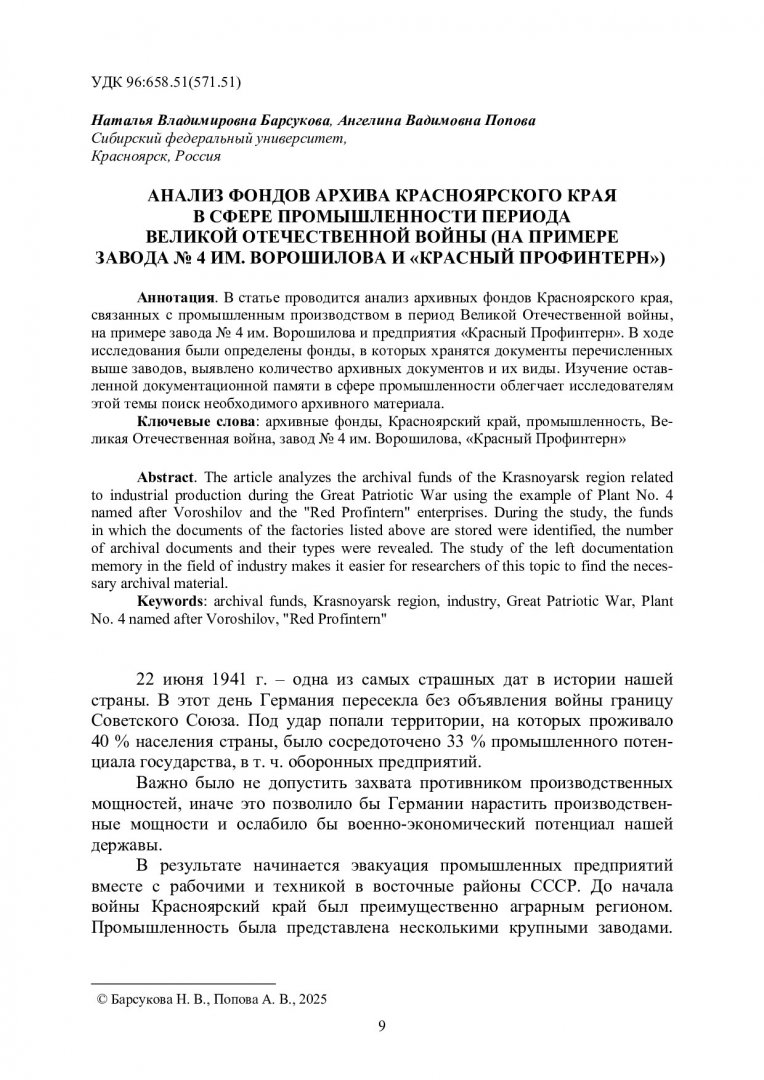 Ключевые слова: Великая Отечественная война, 1941-1945 гг., Енивейская губерния, история, Красноярский край, история, архивные материалы по истории Красноярского края, государственная власть, наука Красноярского края, история, общественное питание, история, местные органы власти, молодежные организации СССР, распад СССР, государственная политика России, патриотическое воспитание, трудовая миграция, советские руководители, индустриализация в СССР, медицинские учреждения Красноярска, экономика Сибири, ядерная программа, миграционная политика, веб-технологии, ядерное сдерживание, речной транспорт, железные дороги России, золотодобывающая промышленность России, XIX в., повседневная жизнь горожан, Степановские чтения