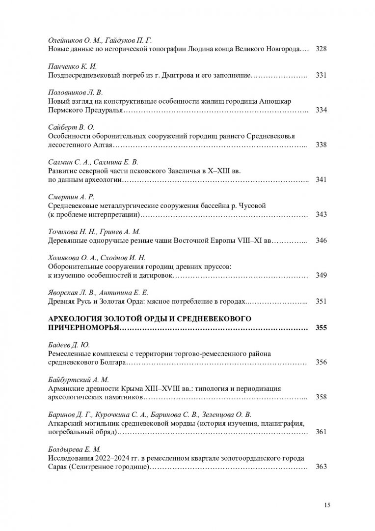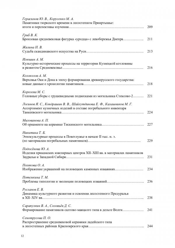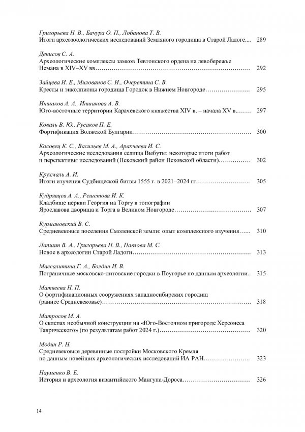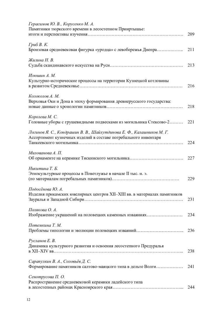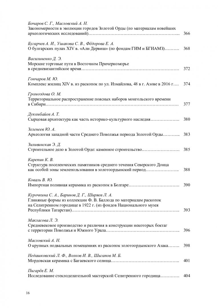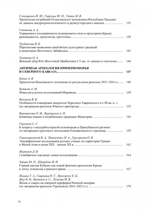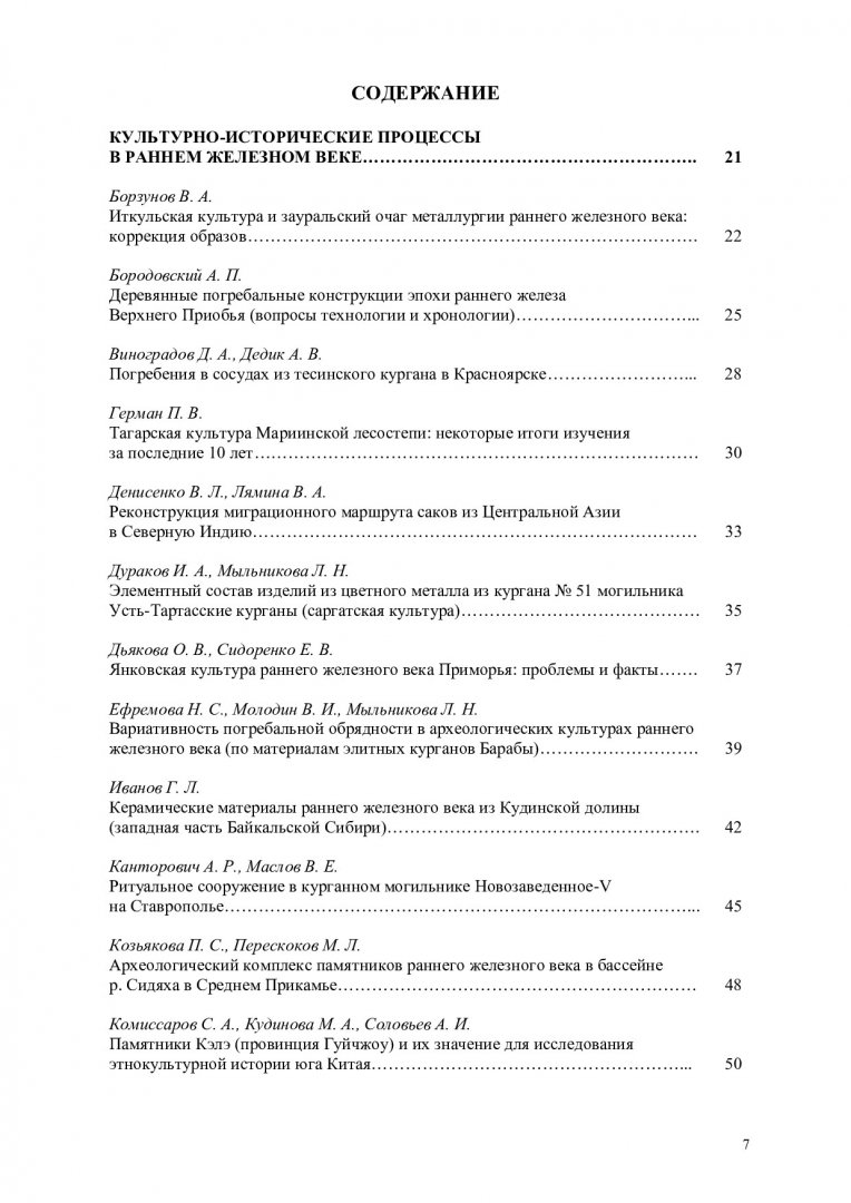 Ключевые слова: железны век, культурно-исторические процессы, античная археология, средневековье, культурно-исторические процессы, археологическое изучение городов и поселений, Золотая Орда, археология, культура Южной Сибири, культура Центральной Азии, иткульская культура, тагарская культура, изделия из цветного металла (саргатская культура), янковская культура, могильник Новозаведенное-V, ритуальное сооружение, памятники Кэлэ (Китай), могильник Смирновка-4, раннесарматские погребальные традиции, городища скифского времени, раннеславянские миграции, длинноклинковое оружие кочевников, таштыкский могильник Тесинский Залив-3, Тимирязевский курганный могильник-1, Варнинский могильник, Оглахтинский могильник, археология Крыма, Семибратнее городище, некрополь Артющенко-2, городище Сююрташ, Маркульское городище, древнерусское государство, могильник Стексово-2, Танкеевский могильник, половецкие изваяния, памятники салтово-маяцкого типа, керамика средневековая, средневековые городища, археологические исследования, аскизская культура, X-XI вв., замки Тевтонского ордена, XIV-XV вв., селище Выбуты, Ярославово дворище, западносибирские городища, археология, оборонительные сооружения средневековые, Аткарский могильник, золотоордынские города, сырцовая архитектура, строительное дело в Золотой Орде, Селитренное гордище, Багаевское селище, мордовская керамика, металлические украшения Золотой Орды, курганы кочевников, X в., курганный могильник Камень-2, пазырыкская культура Алтая, Уюкские курганы (Тува)