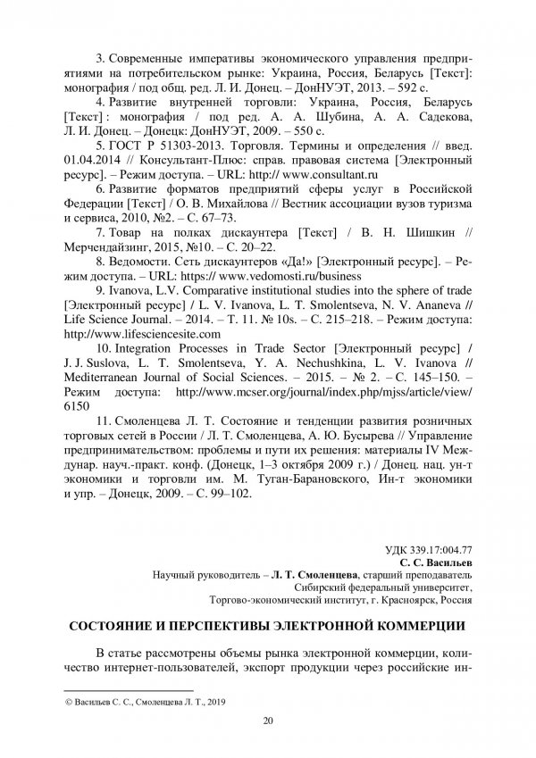 Ключевые слова: коммерческая деятельность, ввп, заработная плата, покупательское поведение, электронная коммерция, мерчандайзинг, сетевая торговля, ценообразование, ценовая политика, торговый персонал, стандартизация, инновационная деятельность, мобильная торговля, информационные технологии, продукты питания, государственное регулирование цен, кластеры в региональной экономике, сетевой ритейл, прибыль и рентабельность, закупки, оптовые закупки товаров, российско-китайское сотрудничество, рыночные отношения, внешнеторговый оборот, внешняя торговля, международные отношения, инвестиционное сотрудничество, иностранные инвестиции, экспорт, импорт, продовольственная безопасность, сельское хозяйство, цифровая экономика, трансграничная экономическая деятельность, логистика запасов, управление запасами, транспортные перевозки, розничная торговля, международная логистика, аутсорсинг, ассортимент товаров, транспортная инфраструктура, информационная логистика, рынок труда, цифровизация, хозяйственные риски, экономическая безопасность, финансовый анализ, финансовое планирование, интеллектуальная собственность, интеллектуальные права, основные средства, строительство, денежные потоки предприятия, финансовые ресурсы, человеческие ресурсы, кадровый потенциал предприятия, агропромышленный комплекс, бухгалтерская отчетность, бухгалтерский баланс, портфель проектов, стратегическое управление, ресурсный потенциал организации, стратегия развития предприятия, стратегический менеджмент, сфера услуг, управленческий персонал, малое предпринимательство, мотивация персонала, малый бизнес, сбытовая политика, управление рисками