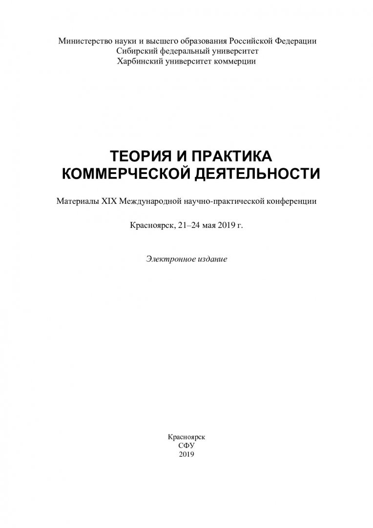 Теория и практика коммерческой деятельности : материалы XIX Международной научно-практической конференции, Красноярск, 21–24 мая 2019 г.