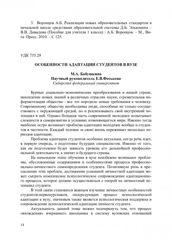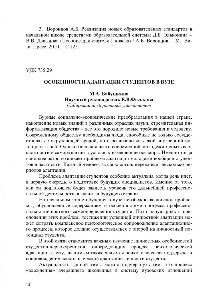 Библиографическое описание:Молодежь и наука : материалы VIII Всероссийской научно-технической конференции студентов, аспирантов и молодых ученых, посвященной 155-летию со дня рождения К. Э. Циолковского, г. Красноярск, 19-27 апр. 2012 г. : в 4-х т. / Сиб. федерал. ун-т; отв. за вып. О. А. Краев. - Электрон. текстовые дан. (PDF, 22,6 Мб). - Красноярск : СФУ, 2012. - Текст : непосредственный. + Текст : электронный. Т. 4. - 2012. - 300 с. : цв. ил., табл. - ISBN 978-5-7638-2612-8 : 190.00 р. - Изд. № 2012-8765 Том 4 организован Институтом педагогики, психологии и социологии в рамках 25-летнего юбилея Психолого-педагогического факультета
