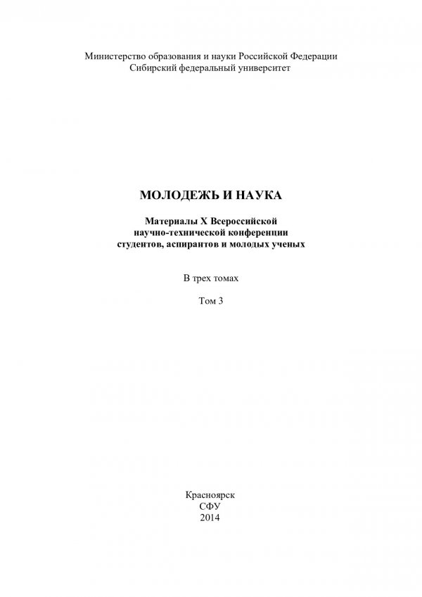 Молодежь и наука : материалы X Всероссийской научно-технической конференции студентов, аспирантов и молодых ученых, [посвященной 80-летию образования Красноярского края]. Т. 3