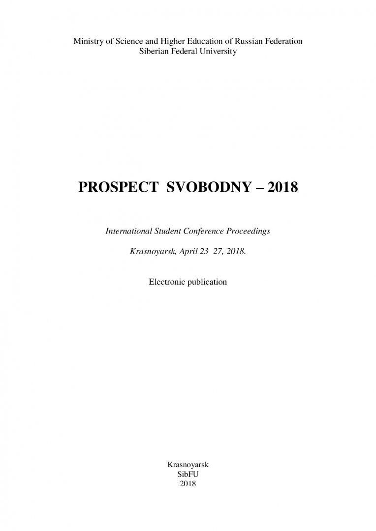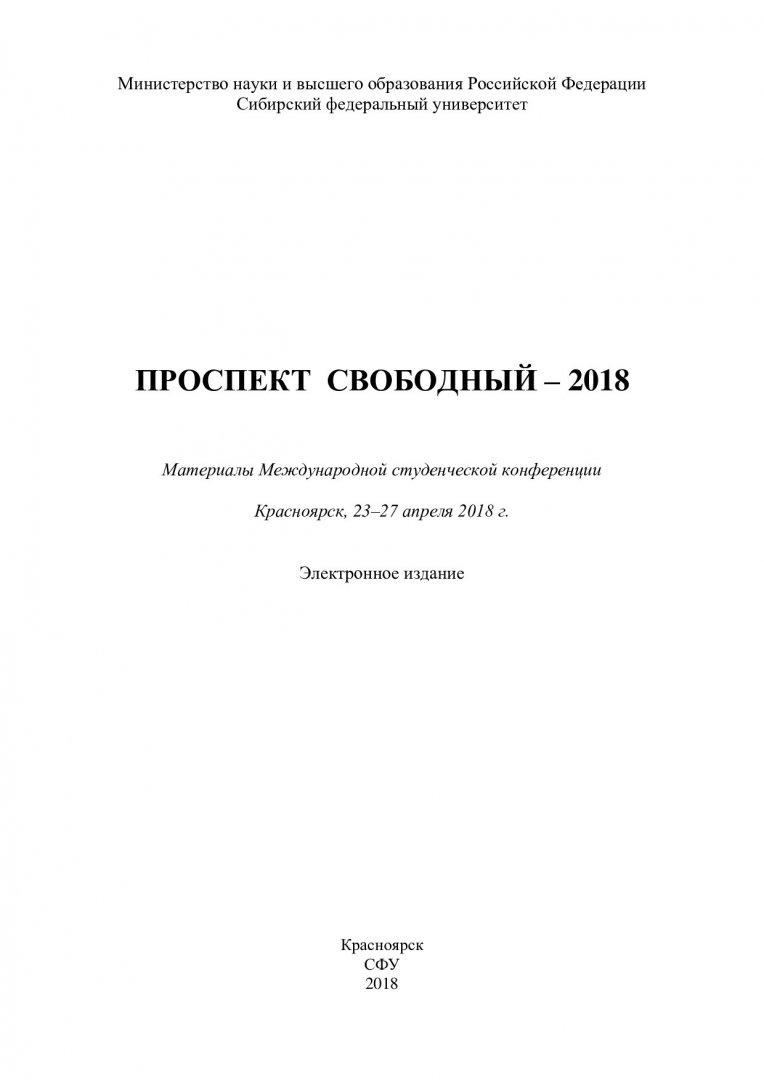 Проспект Свободный - 2018 : материалы Международной студенческой конференции, Красноярск, 23–27 апреля 2018 г.