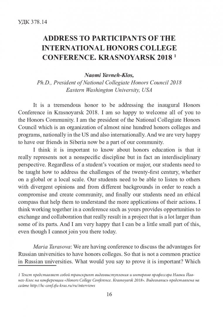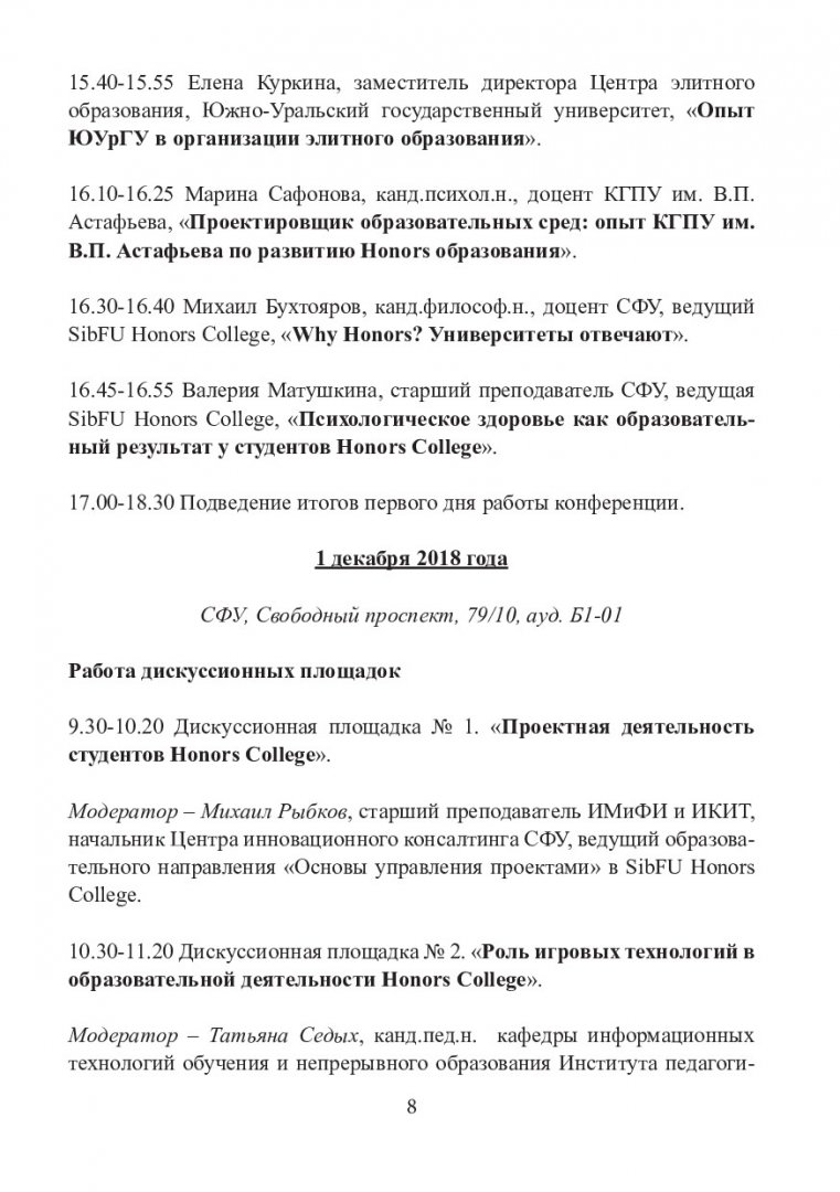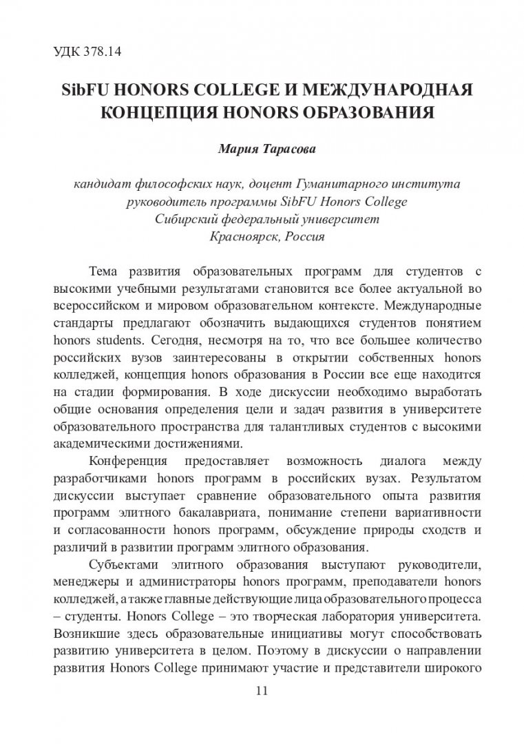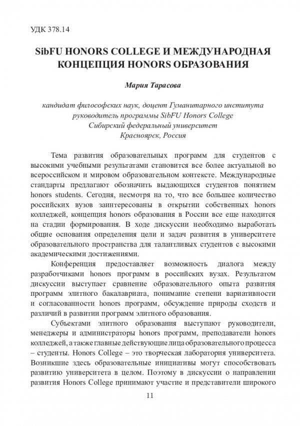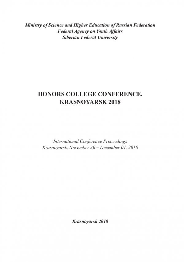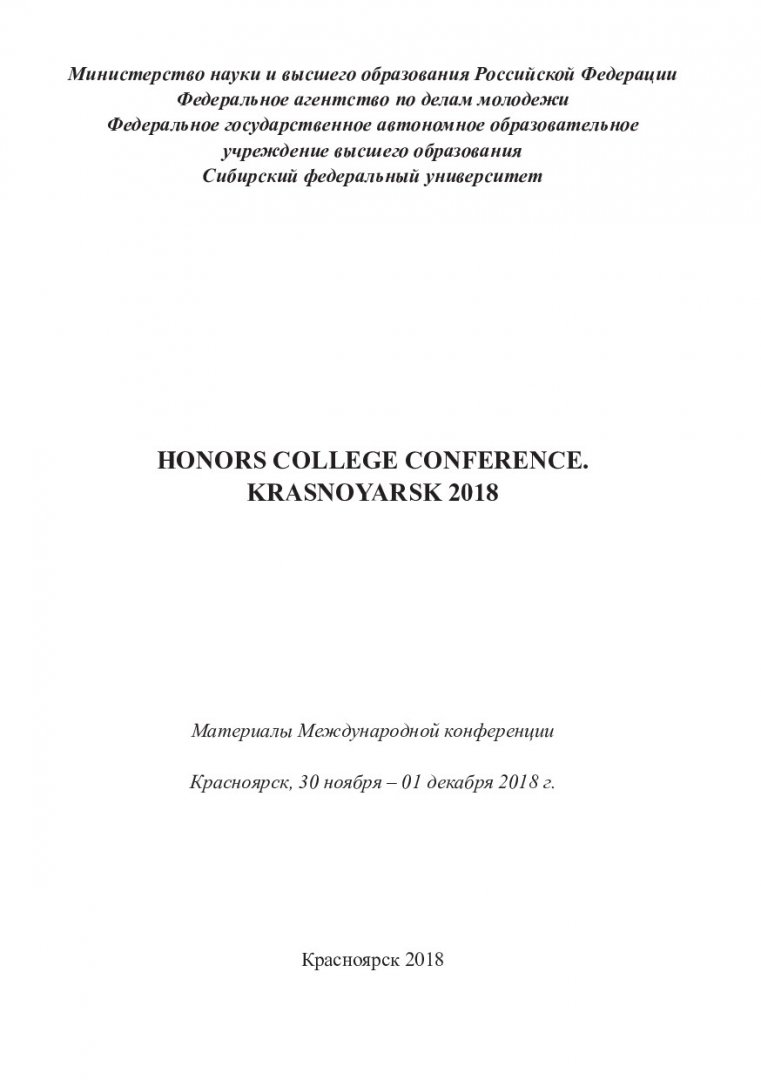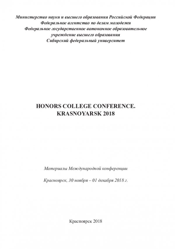 Honors college conference. Krasnoyarsk 2018 : материалы Международной конференции, Красноярск, 30 ноября - 01 декабря 2018 г.