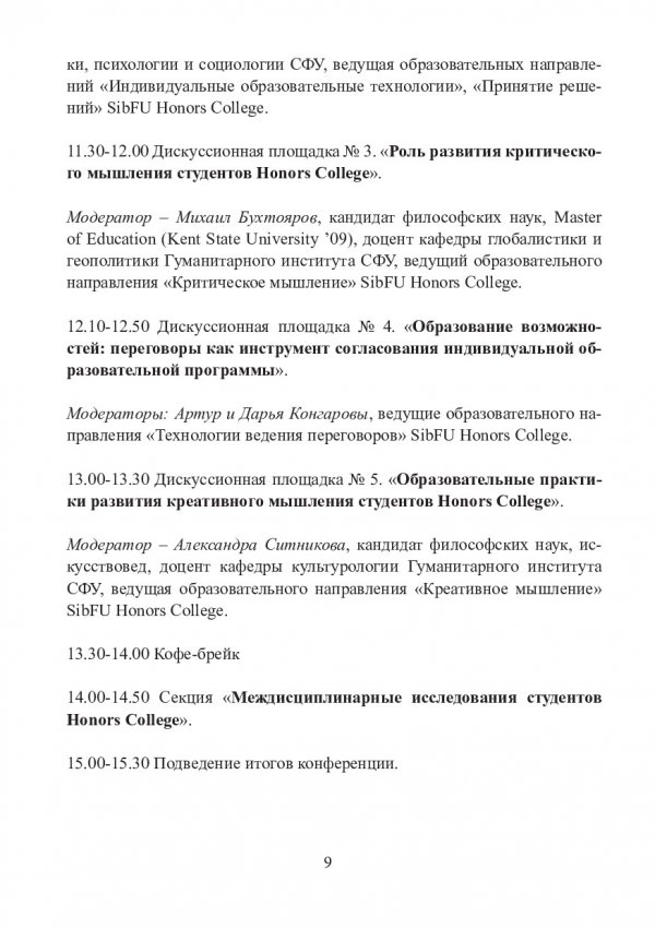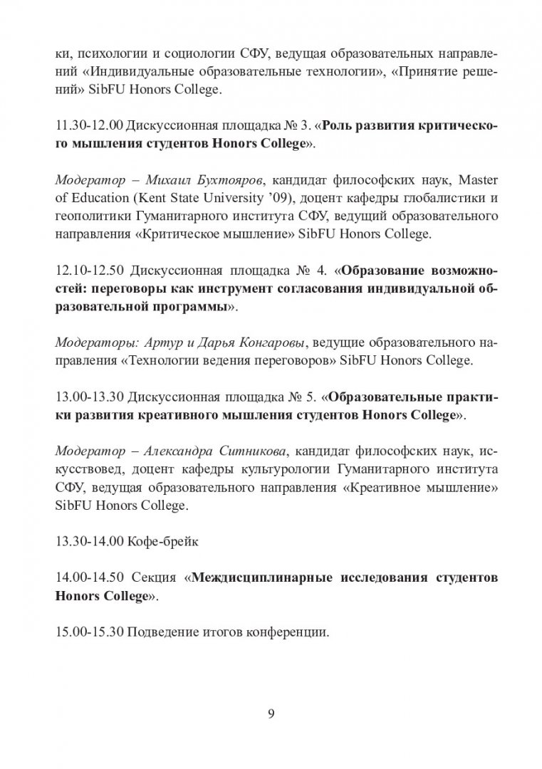 Аннотация: Представлены результаты дискуссии, доклады о развитии программ элитного бакалавриата в российских и зарубежных университетах, результаты научно-исследовательской деятельности студентов Honors College. Предназначены для руководителей программ элитного бакалавриата, преподавателей и студентов Honors College, а также для всех заинтересованных проблемами развития образовательных программ для студентов с высокими академическими достижениями.