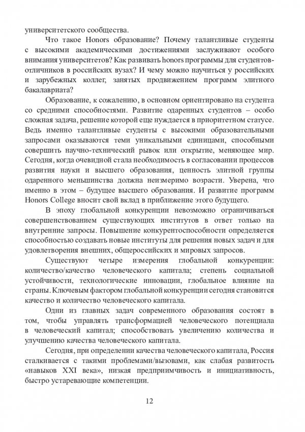 Ключевые слова: Honors college, элитное образование, проектная деятельность студентов, формирование команды, риски проекта, рыночная экономика, бизнес- планирование, стейкхолдеры, игровые технологии в обучении, лидерский потенциал, лидерское мышление, критическое мышление, инженерная деятельность, образовательные практики, креативное мышление, междисциплинарные исследования, уровень притязаний личности, сравнительный анализ, финансовая грамотность, выступления публичные