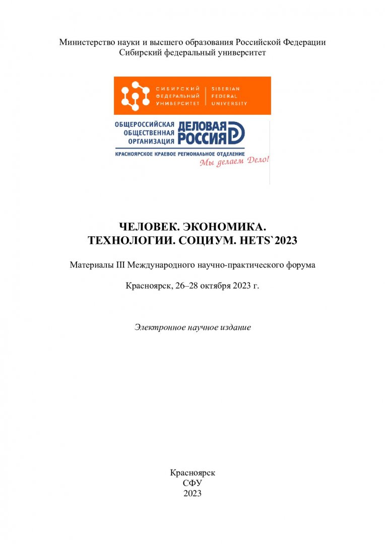 Человек. Экономика. Технологии. Социум. HETS`2023 : материалы III Международного научно-практического форума. Красноярск, 26–28 октября 2023 г.сборник материалов конференции