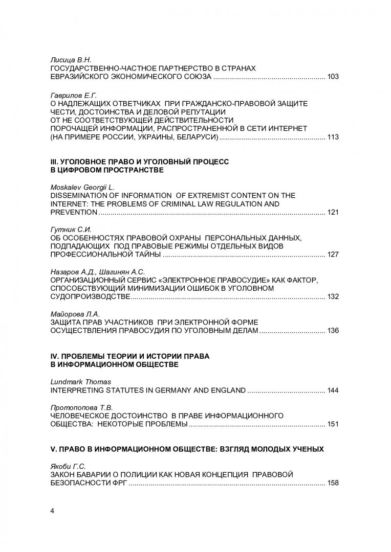 Ключевые слова:конституционное право, право на информацию в сети Интернет, защита частной жизни, электронный документооборот, административные правонарушения, налоговое администрирование, цифровые технологии в праве, оформление прав на недвижимость, блокчейн в охране авторских прав, государственно-частное партнерство, правовая охрана персональных данных, уголовное судопроизводство, законности процедуры онлай-блокировки, "Электронное правосудие" сервис, электронные доказательства